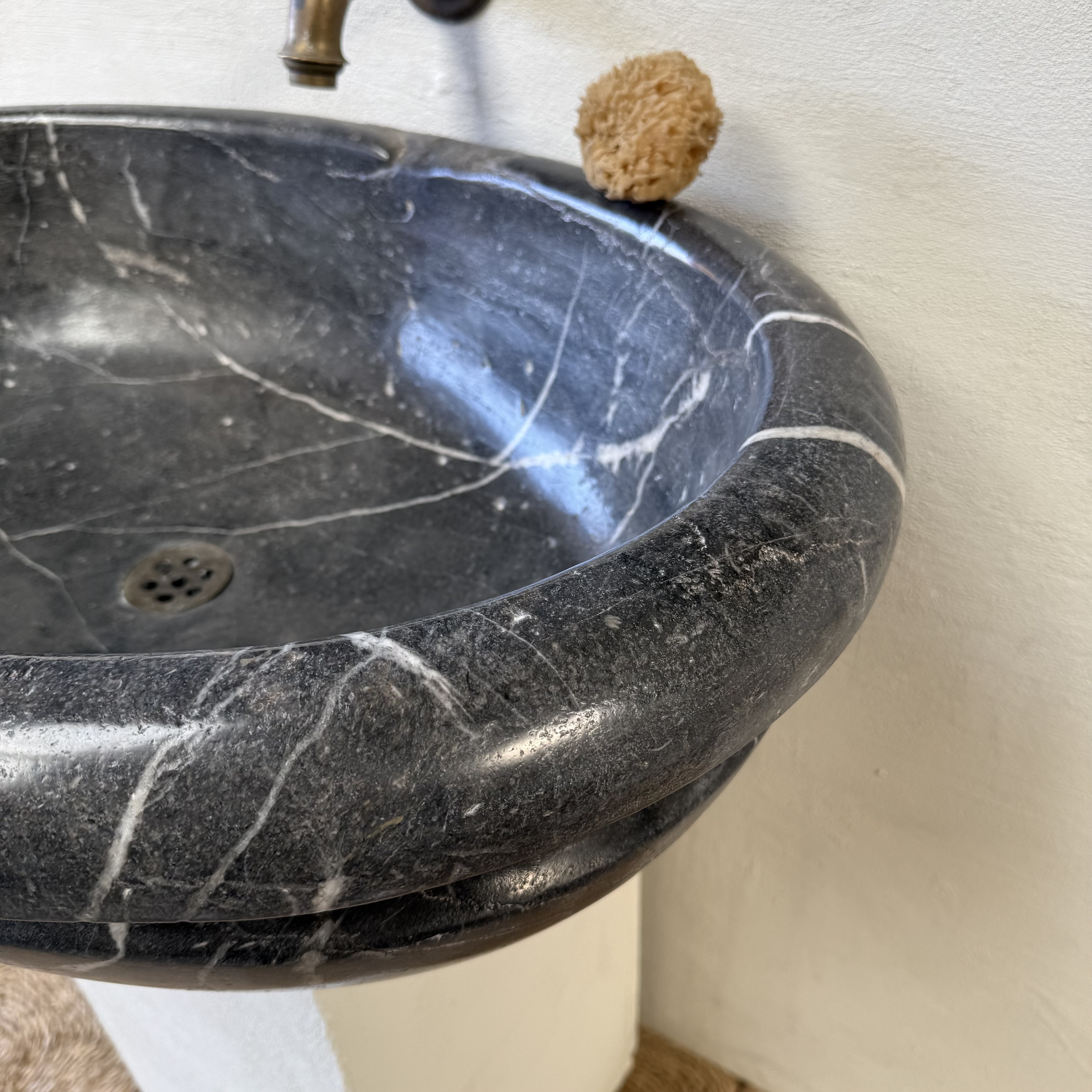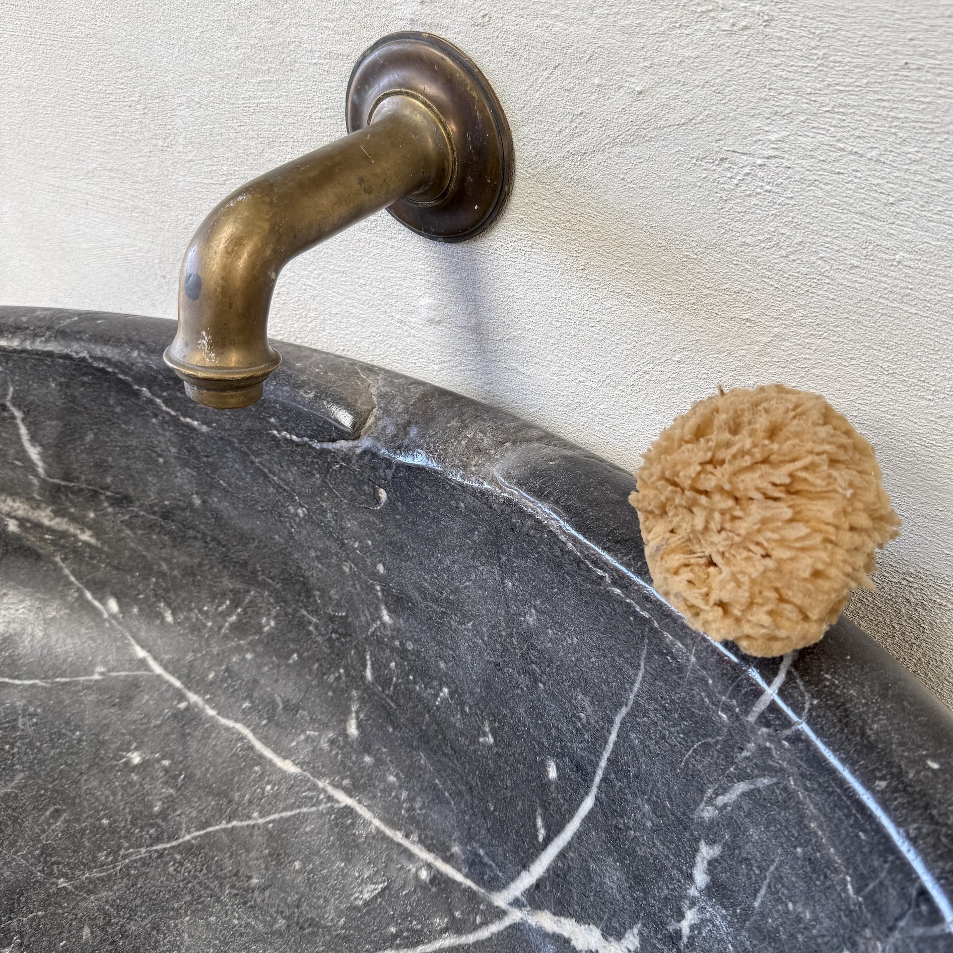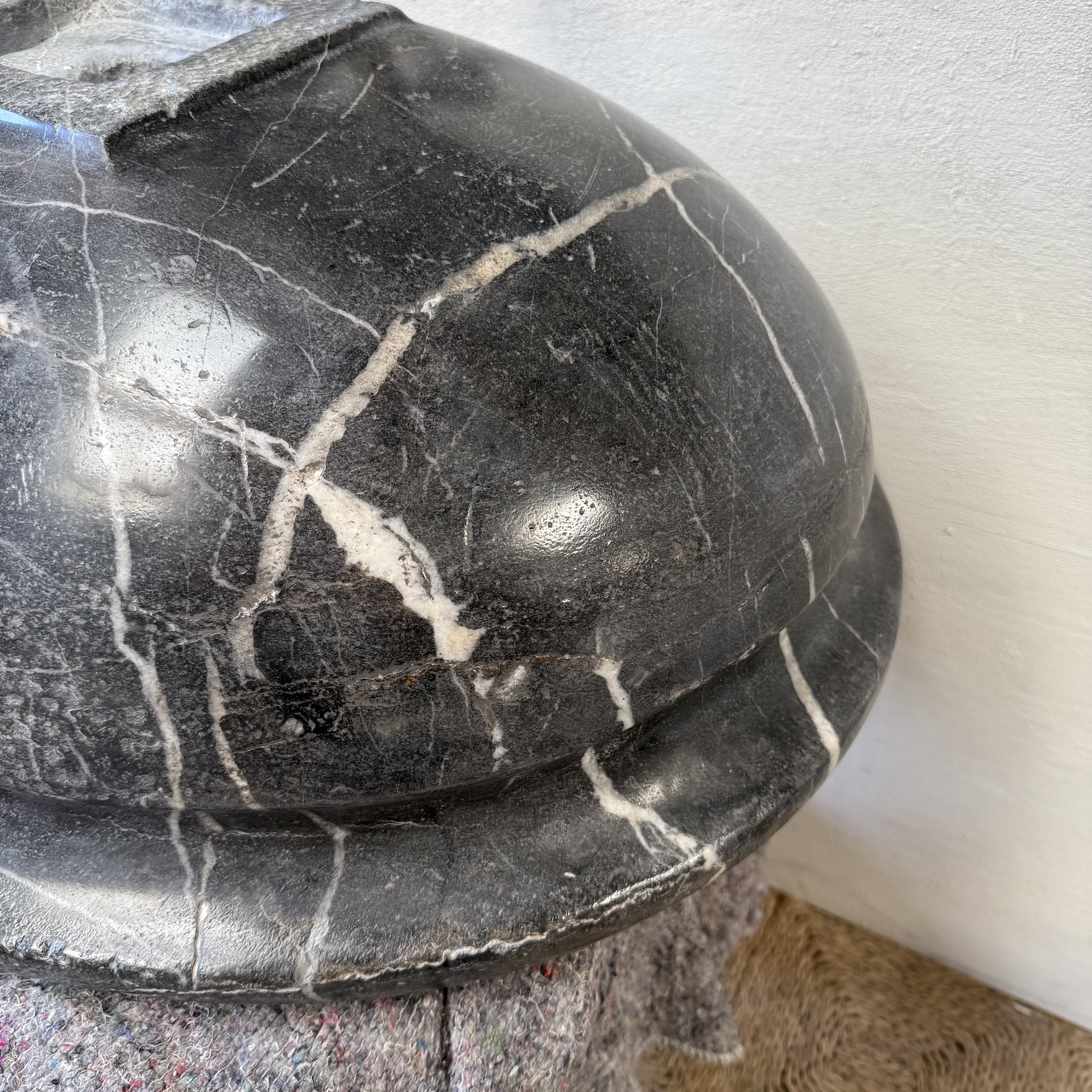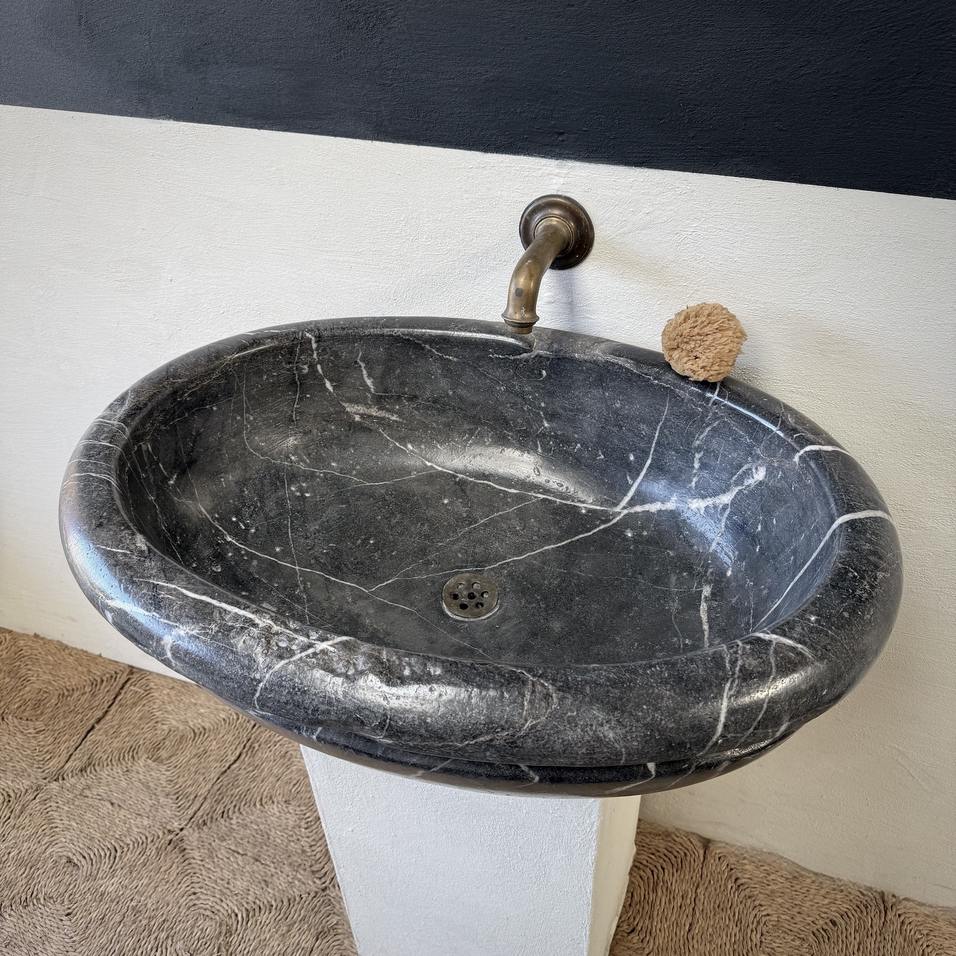 A very large, late 17th-century French oval marble sink carved from richly veined “Cihigue” marble.