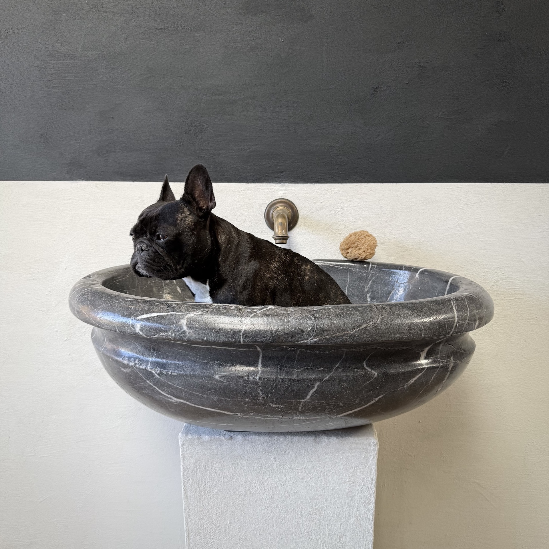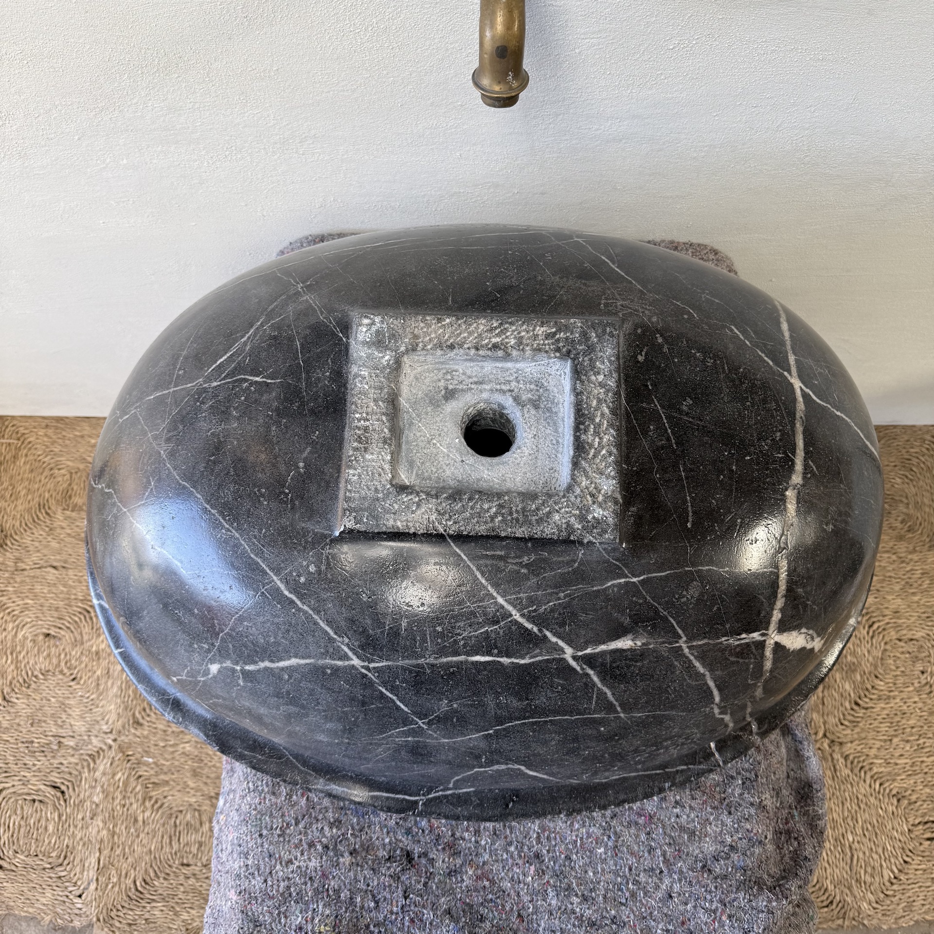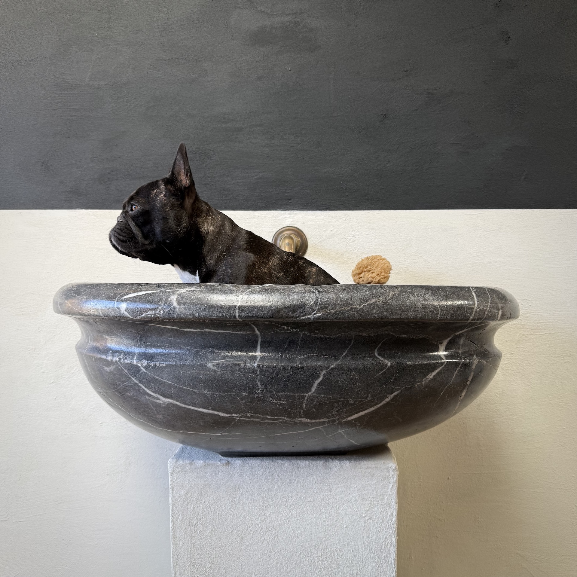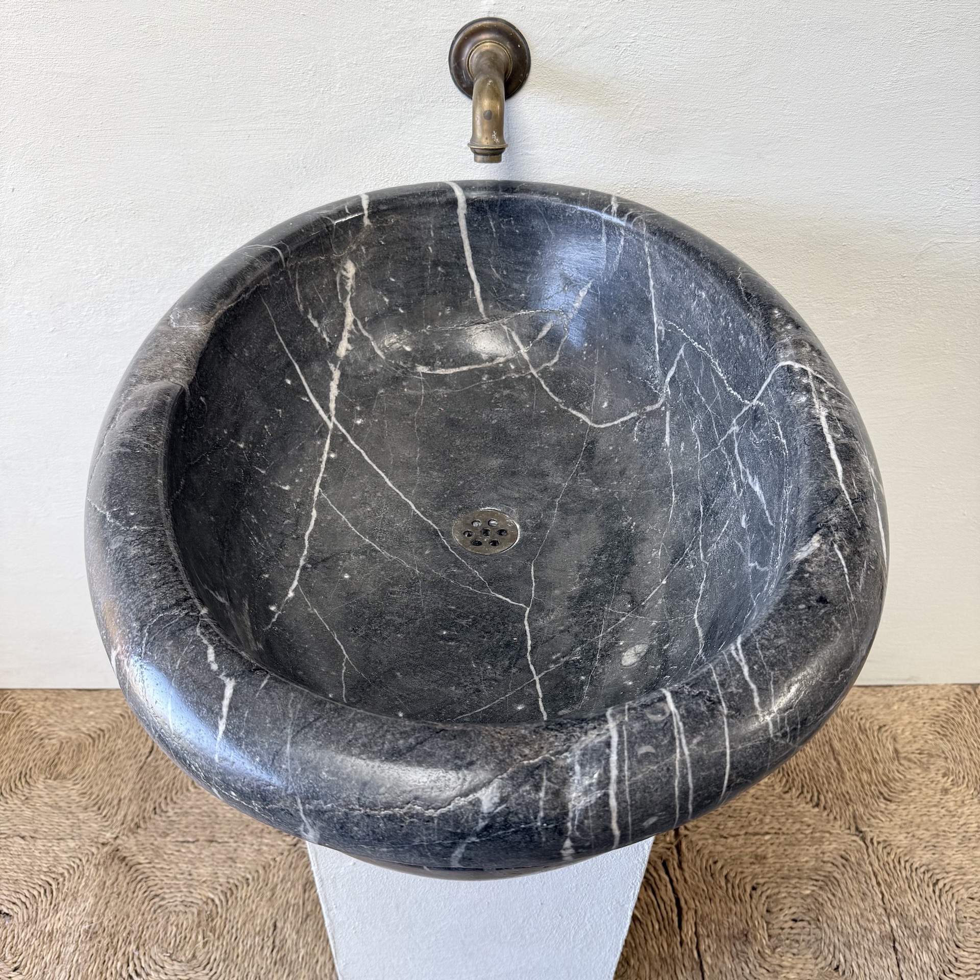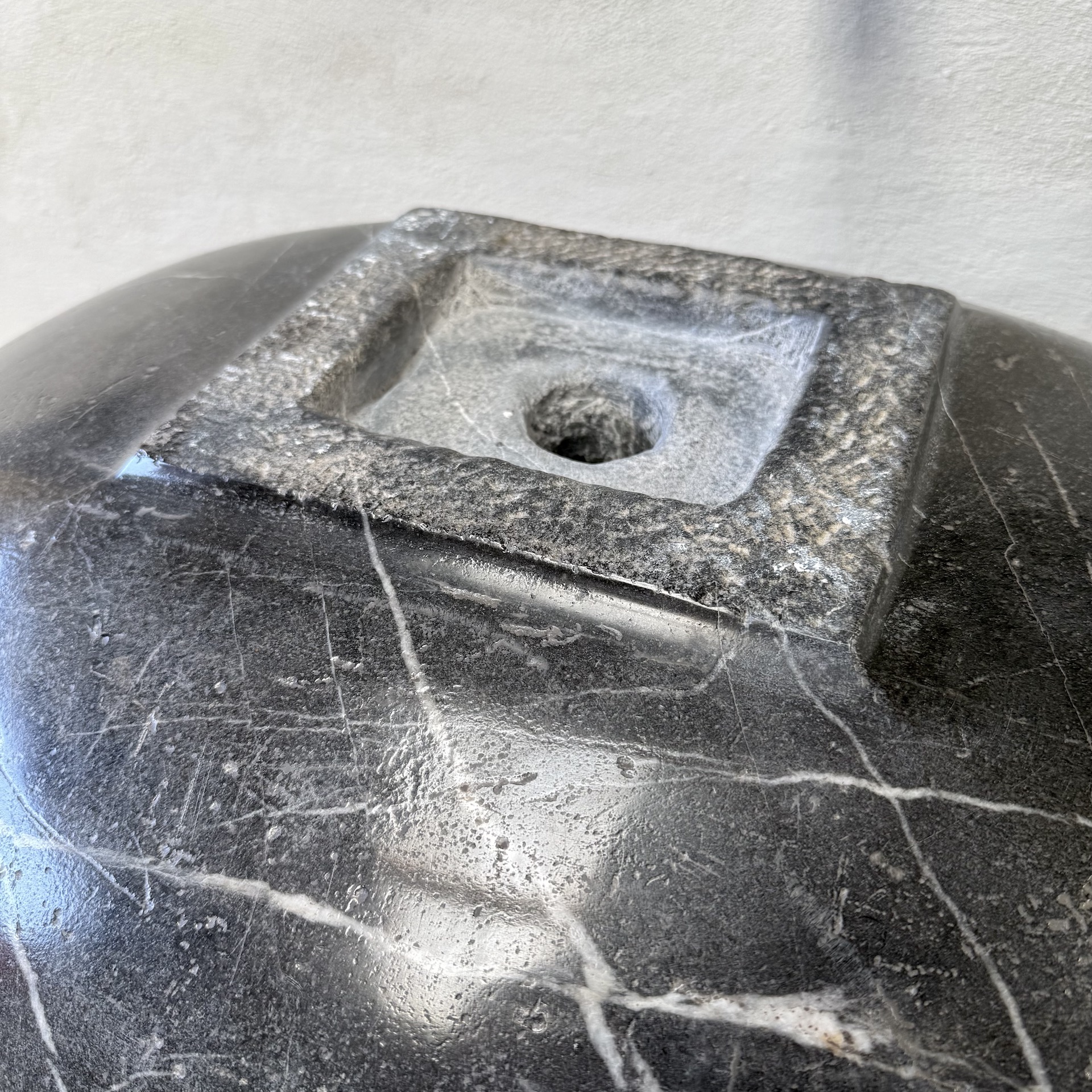 A very large, late 17th-century French oval marble sink carved from richly veined “Cihigue” marble.