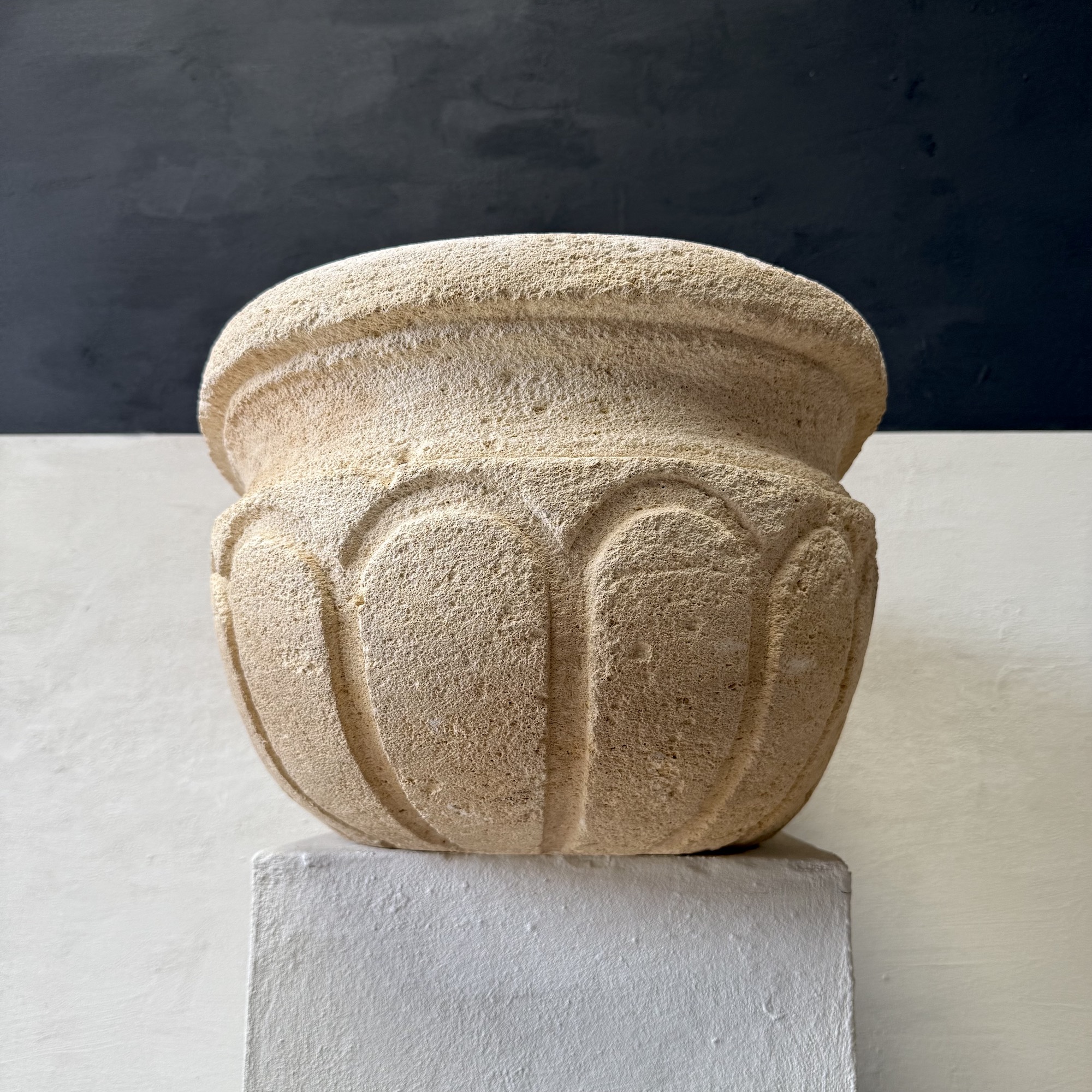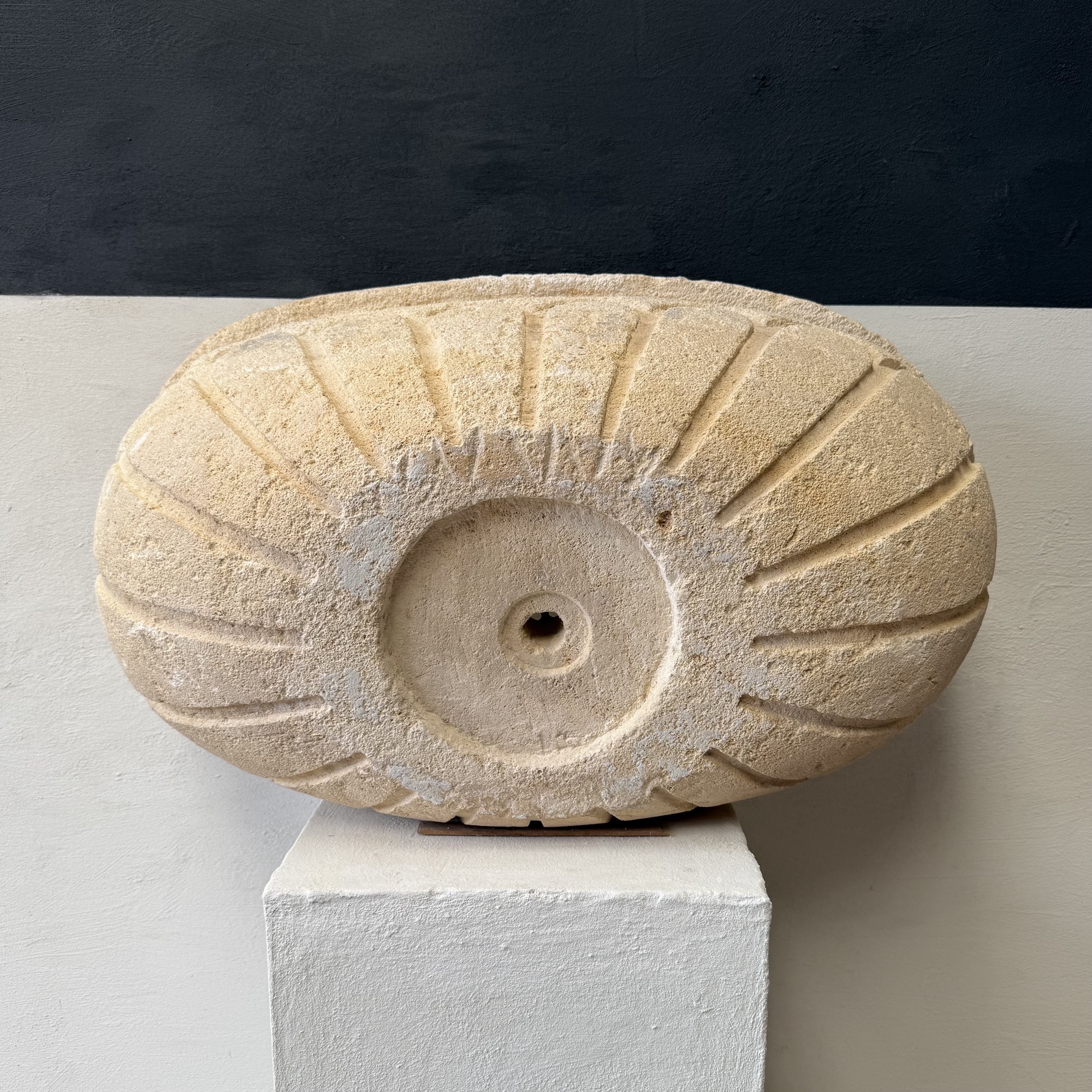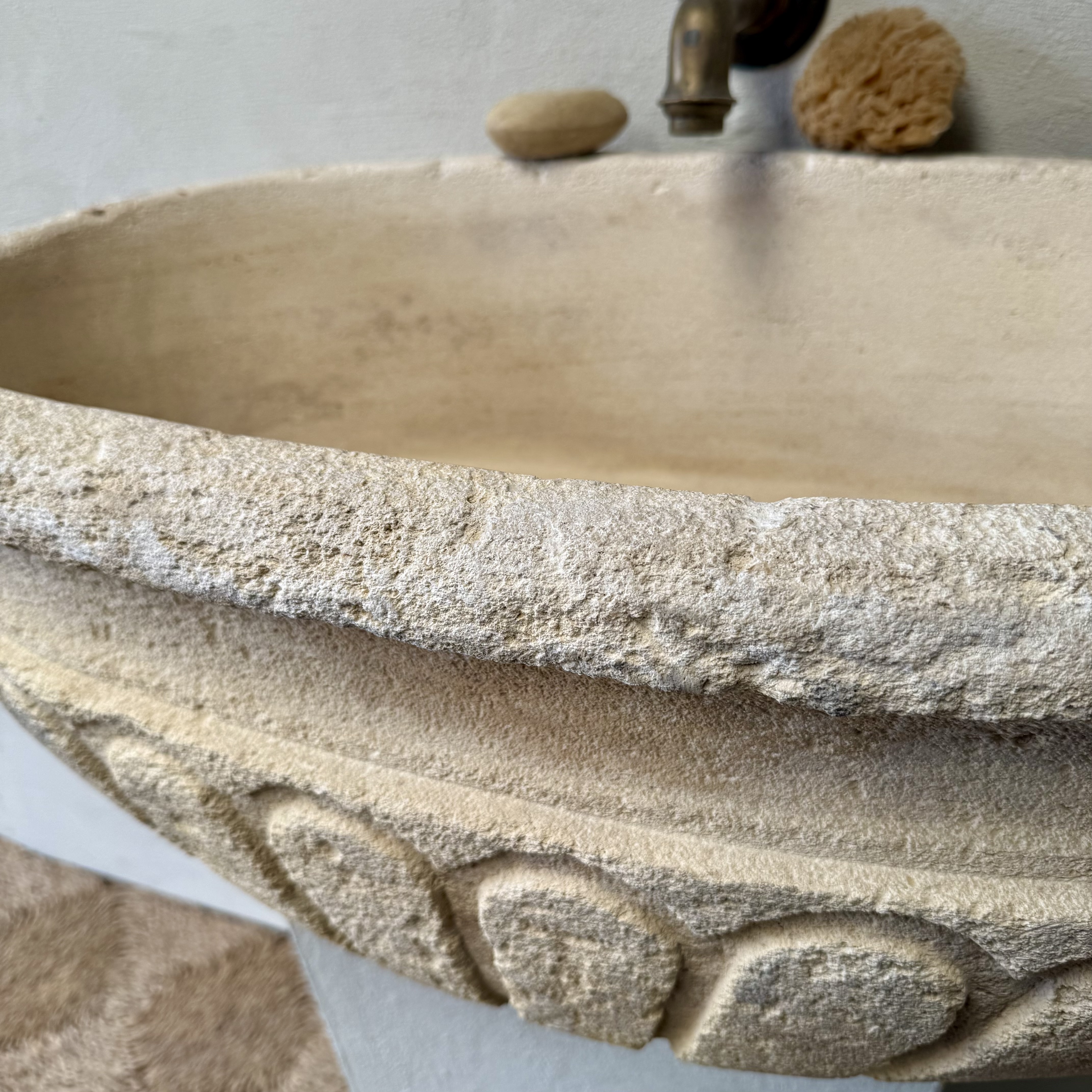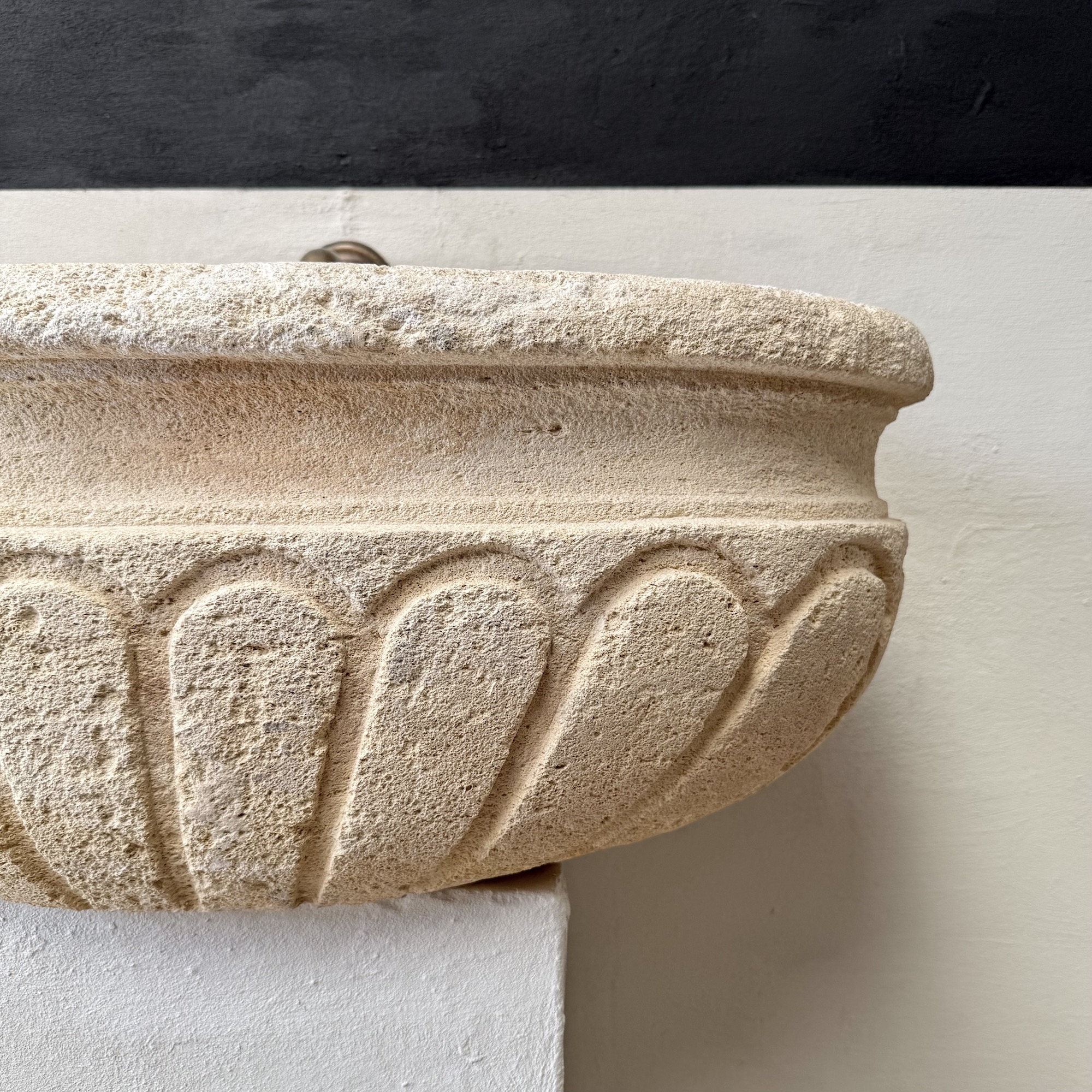 An exceptional 18th-century oval French stone font, finely hand-carved from mellow Pierre de Thénac. The piece features beautifully proportioned gadroons around the body and a well-defined cavetto moulding beneath the upper edge—hallmarks of refined French stonework of the period.