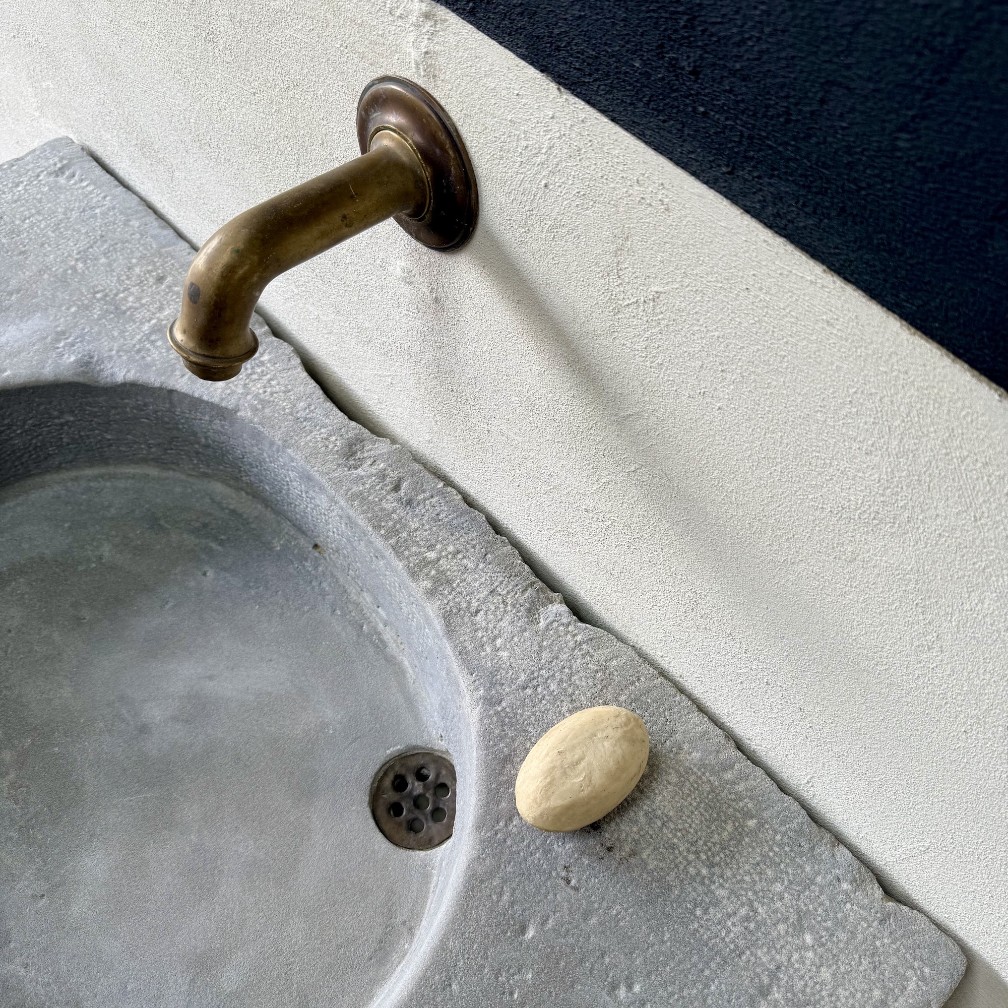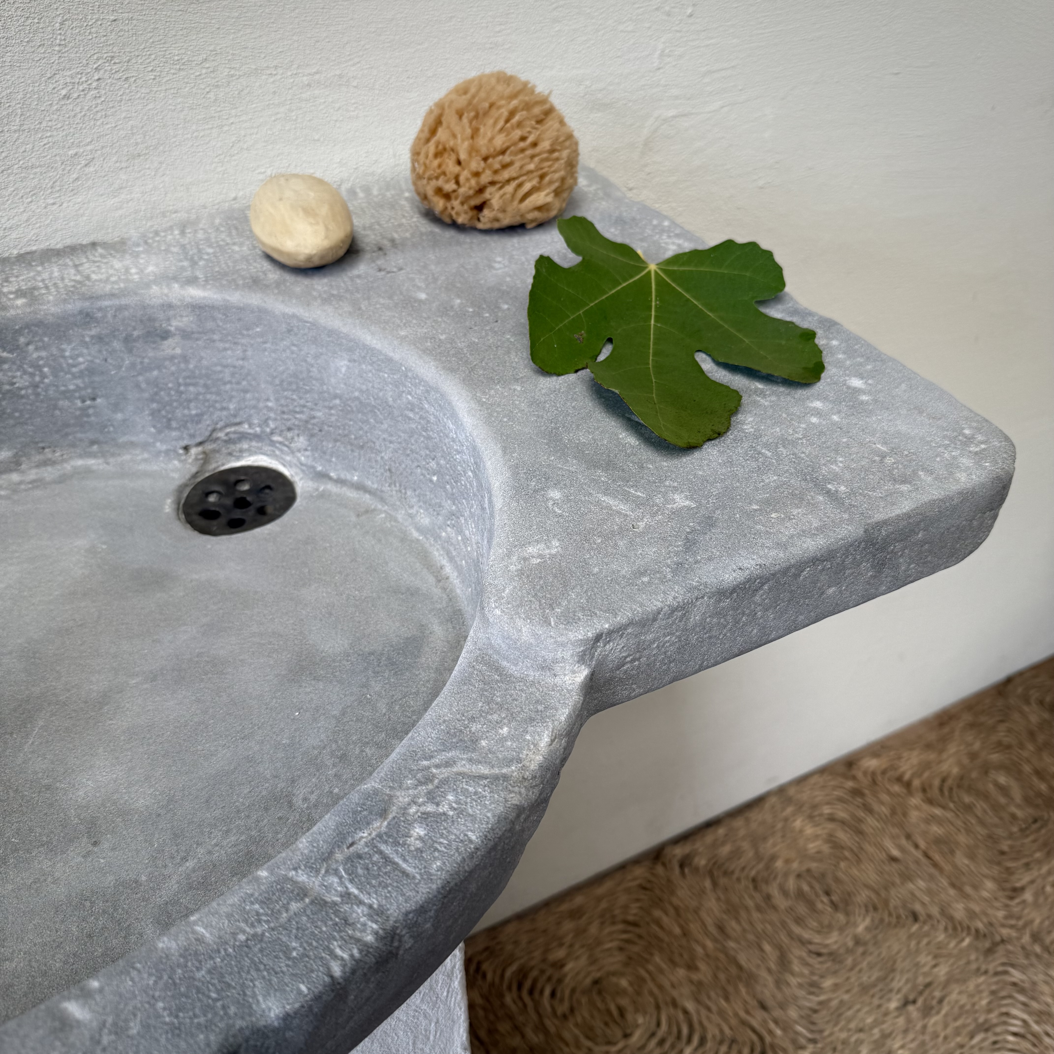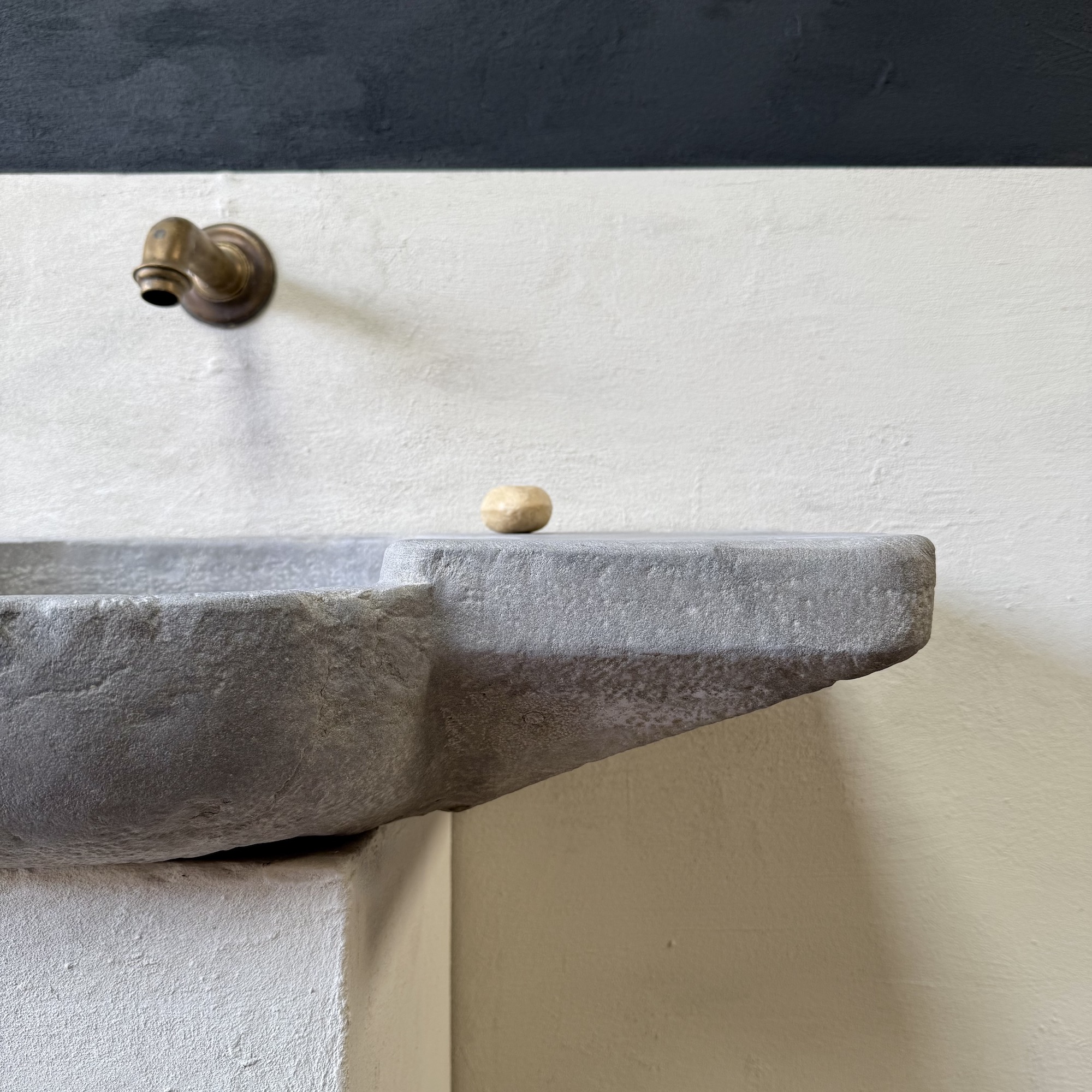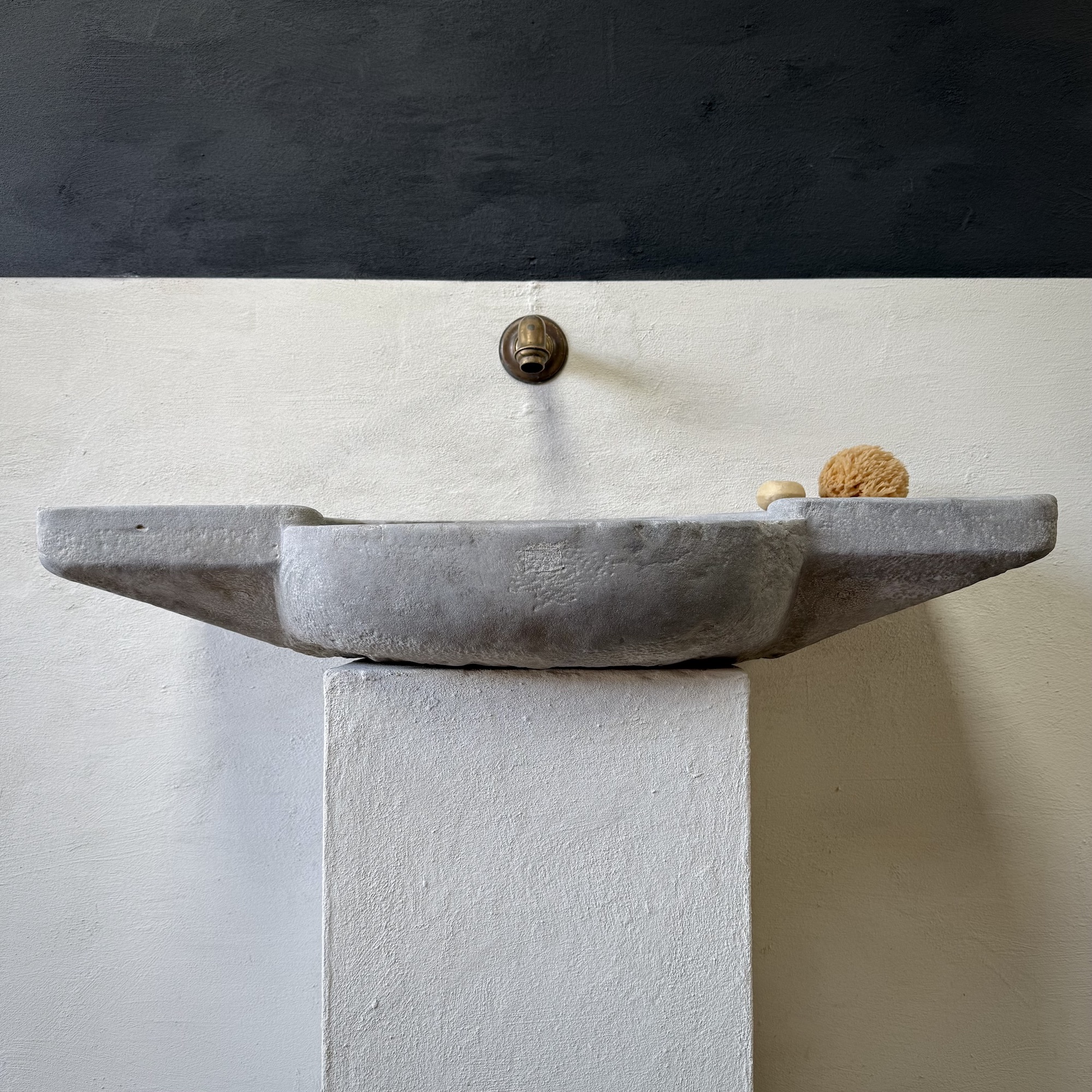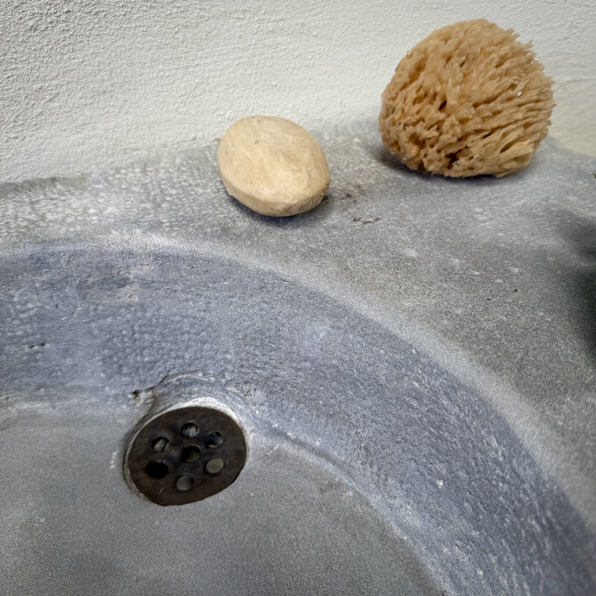 The interior of the basin is smoothly worn, ensuring efficient water drainage, while the overall structure remains sound, watertight, and free of cracks or structural breaks. Minor abrasions, scuffs and small losses are present, consistent with age and use, and contribute to the authenticity of the piece.