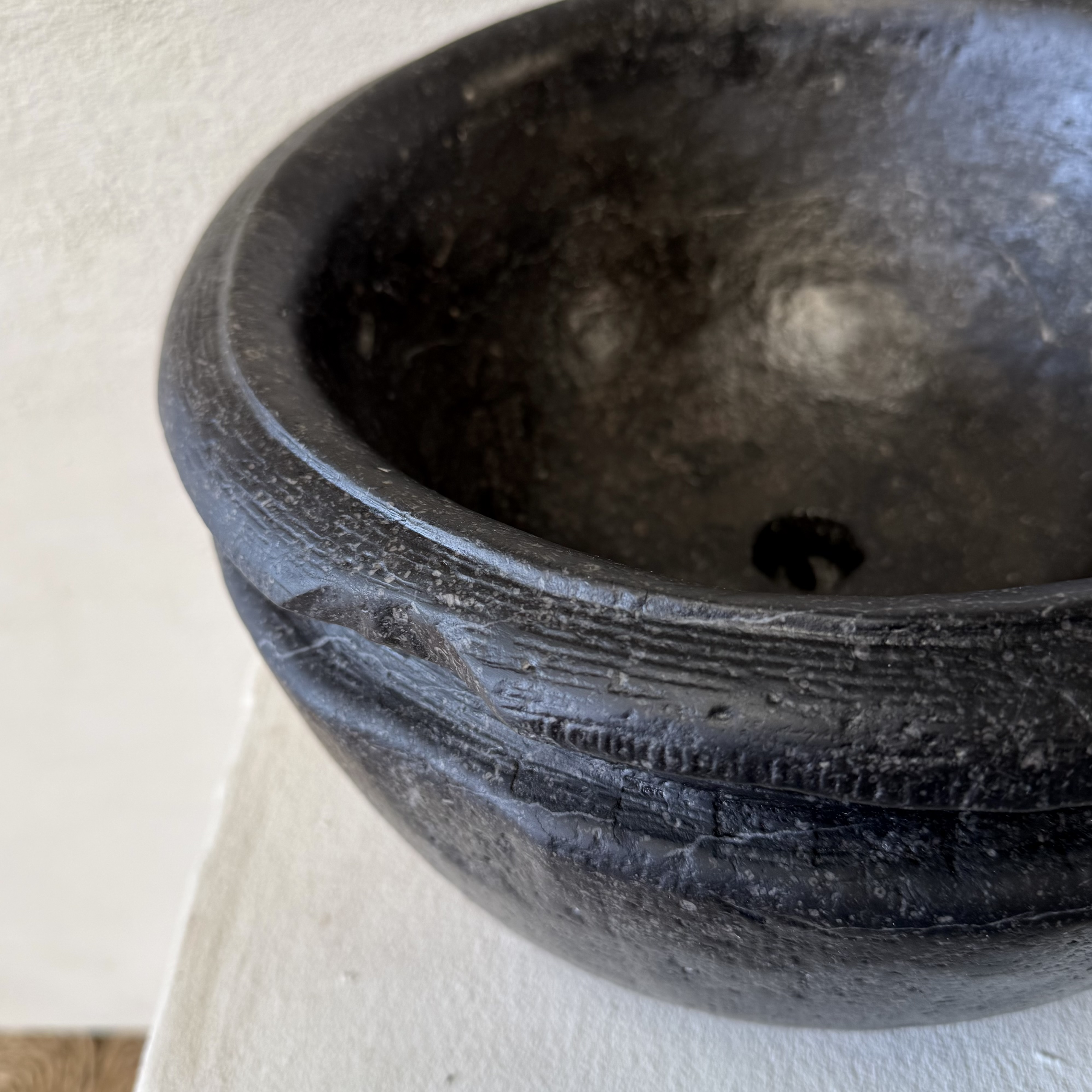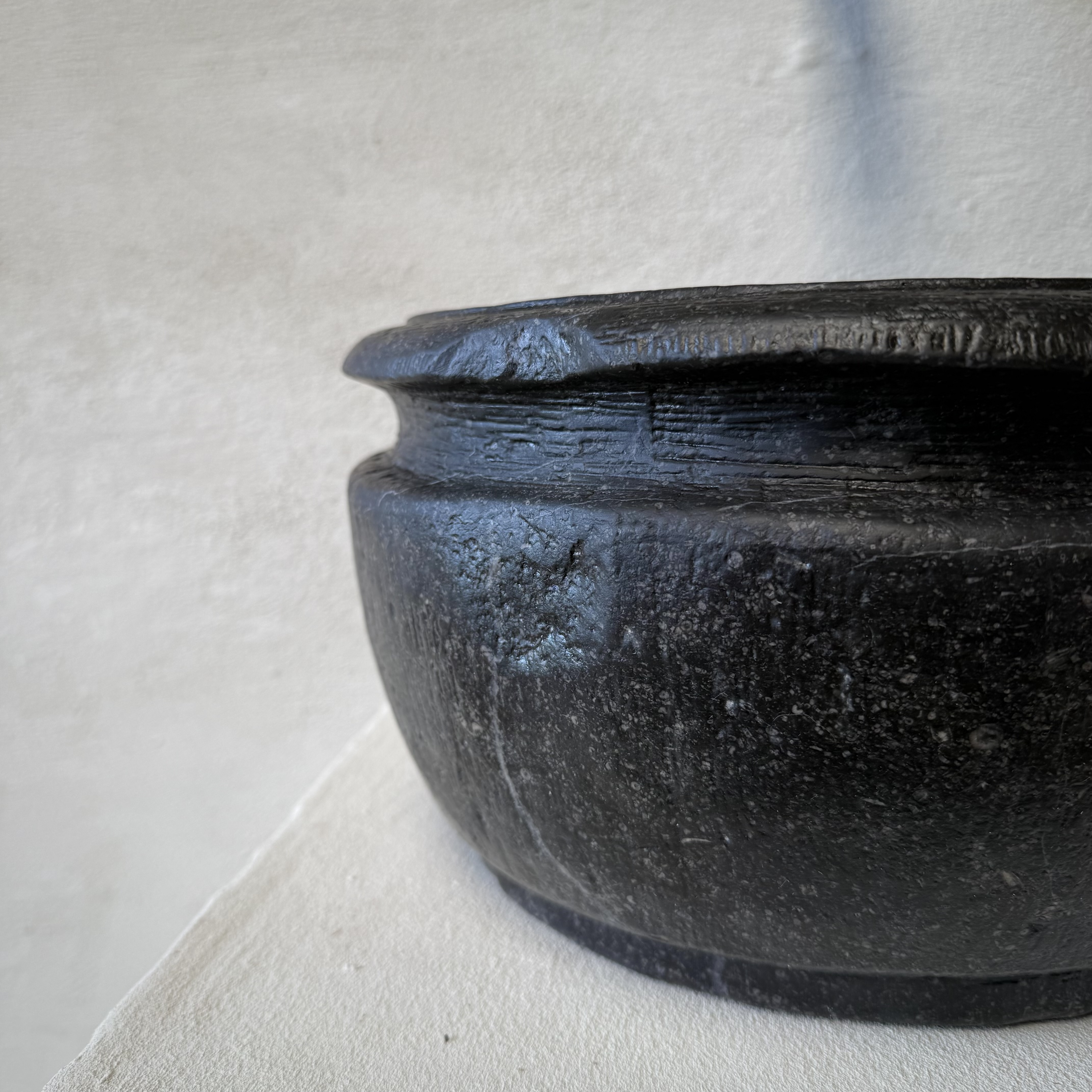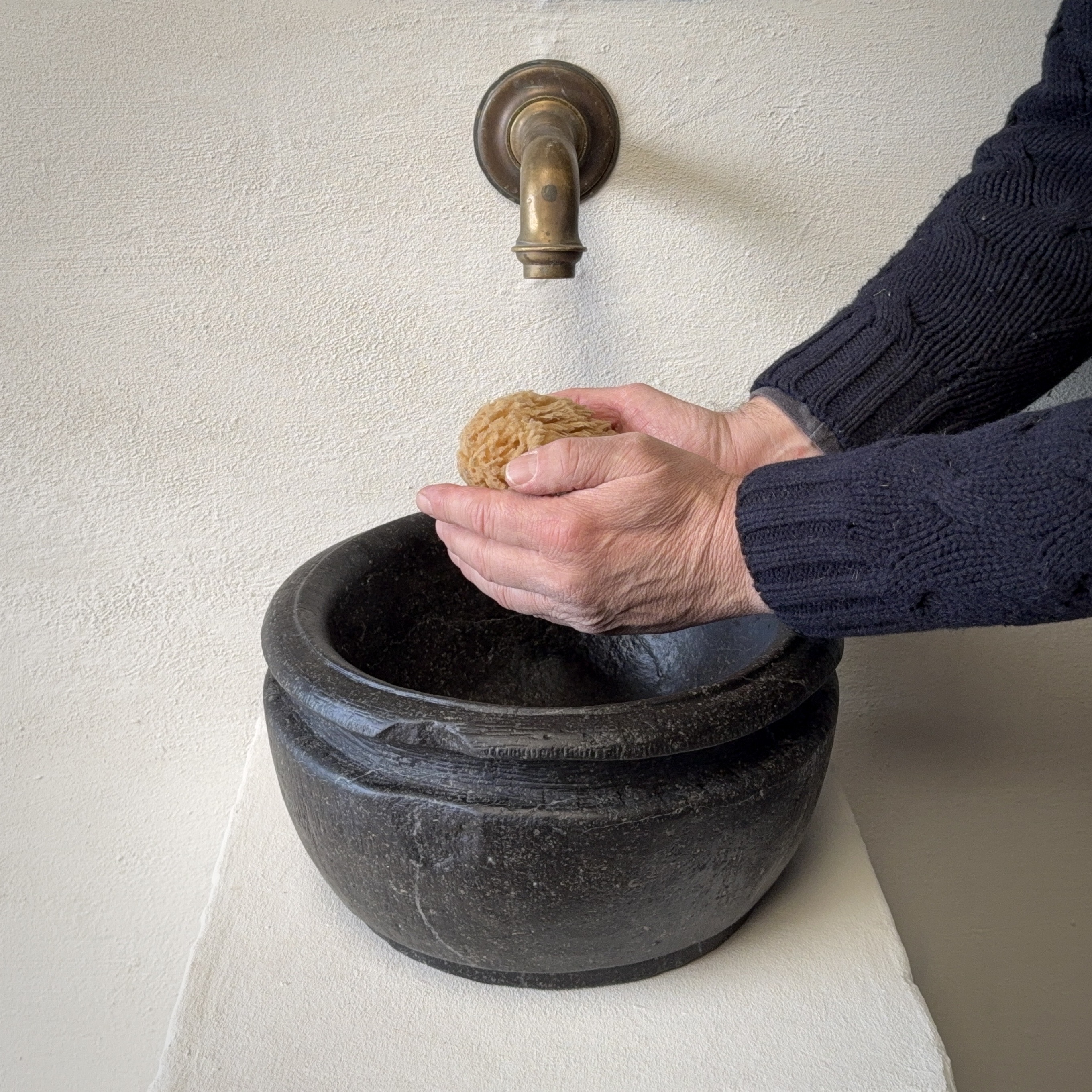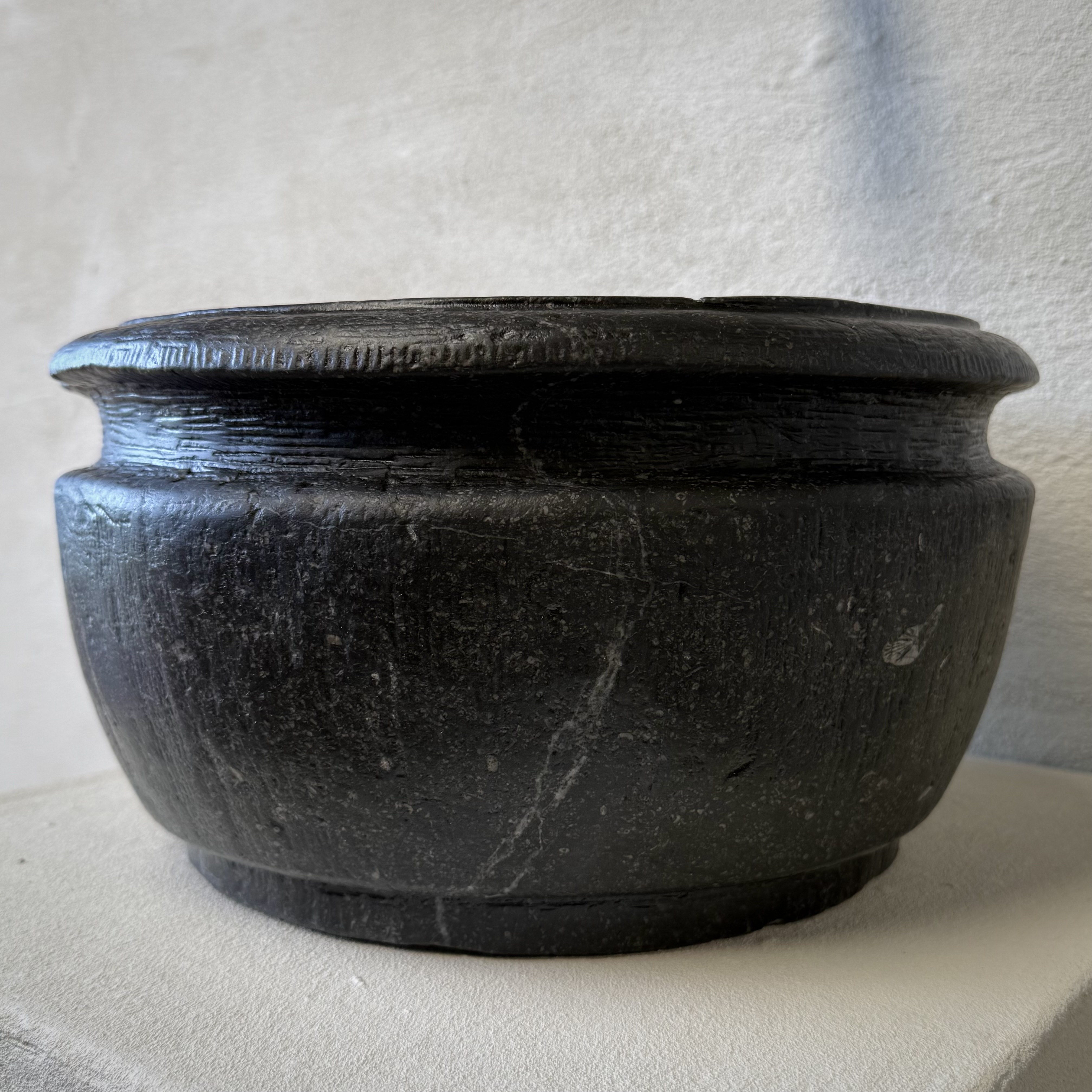 Rare circular Dutch stone font dating to the 18th century, carved from Petit Granit limestone. Featuring a beautifully moulded upper rim and a bowl-shaped body with a delicate, hand-chiseled surface throughout. The interior is smoothly finished, allowing for excellent water drainage. One minor loss to the upper rim (see images). Otherwise in excellent, sound, and fully usable condition, with no cracks or structural breaks. A highly characterful and authentic piece of early Dutch stonework.